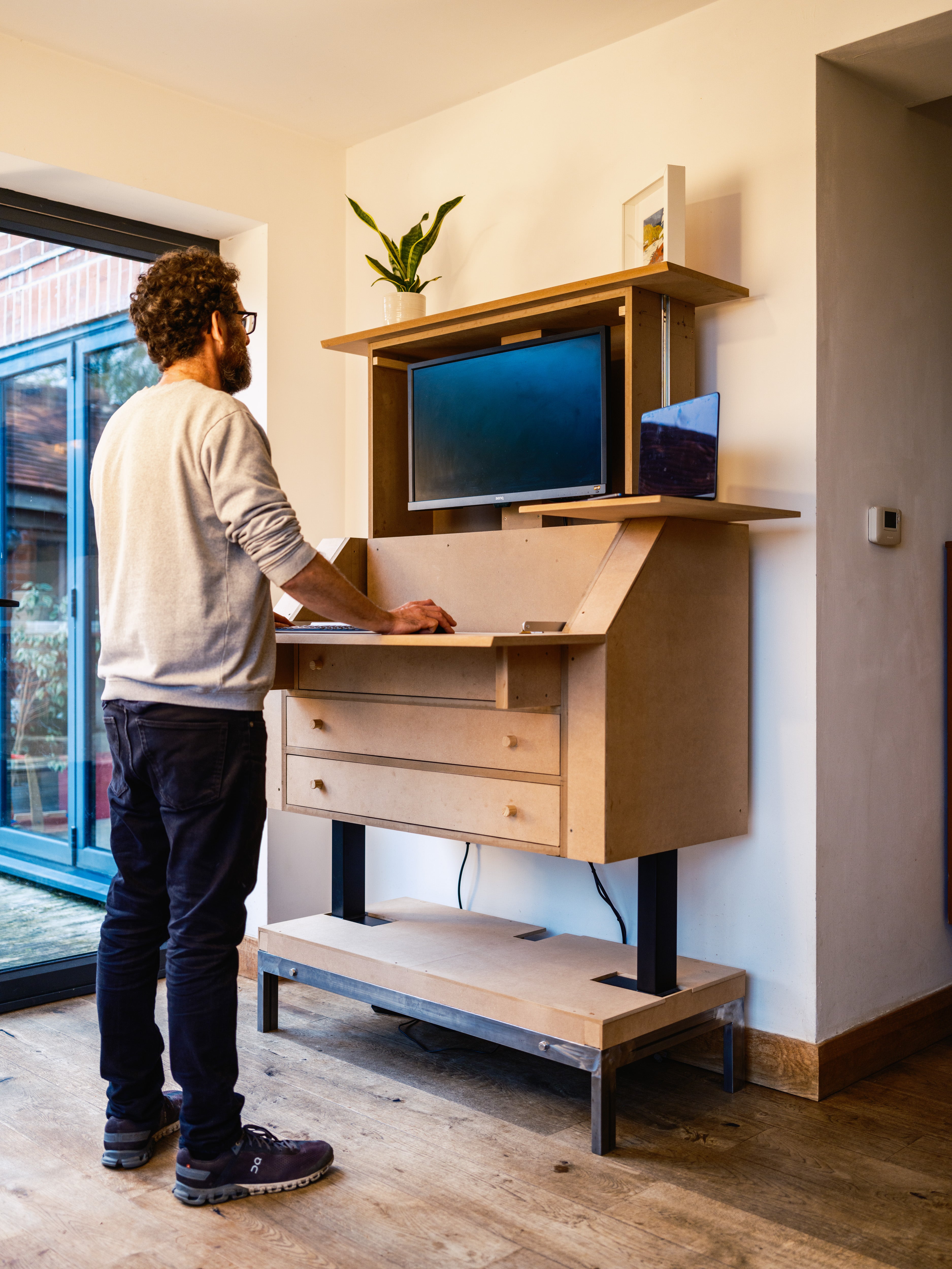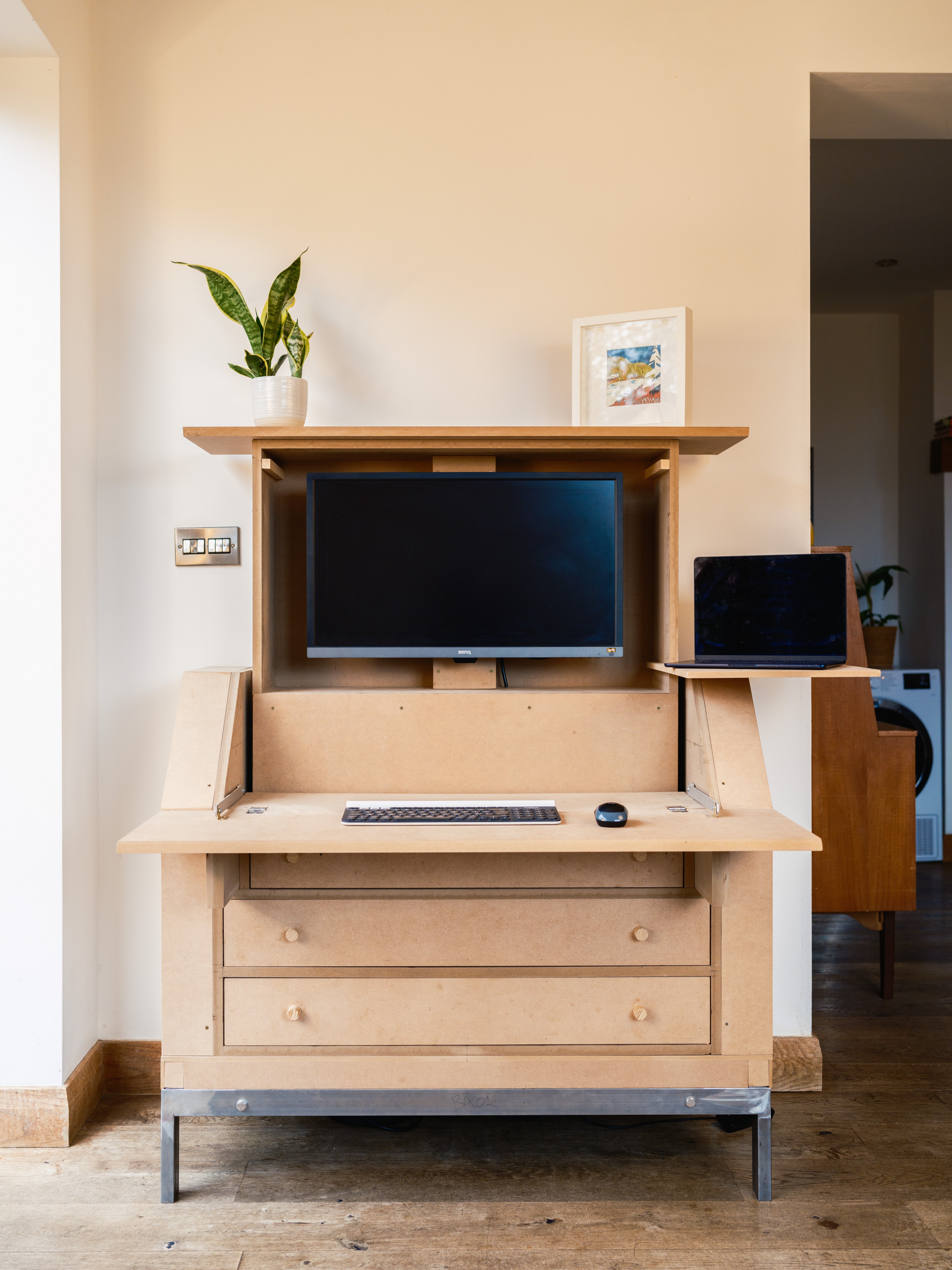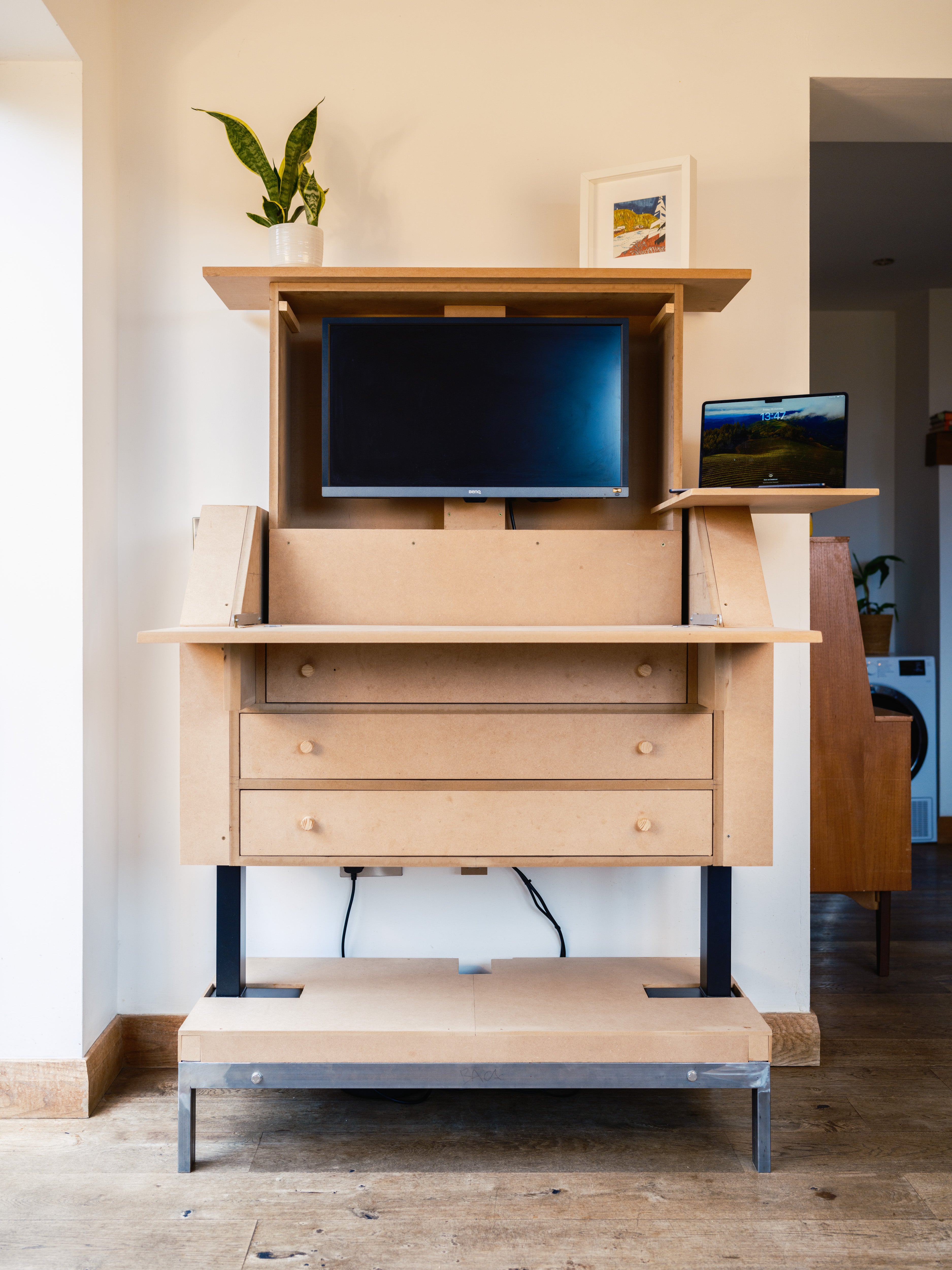 PresentDesk houses up to a 34" curved monitor (max dimensions 81cm x 36cm)